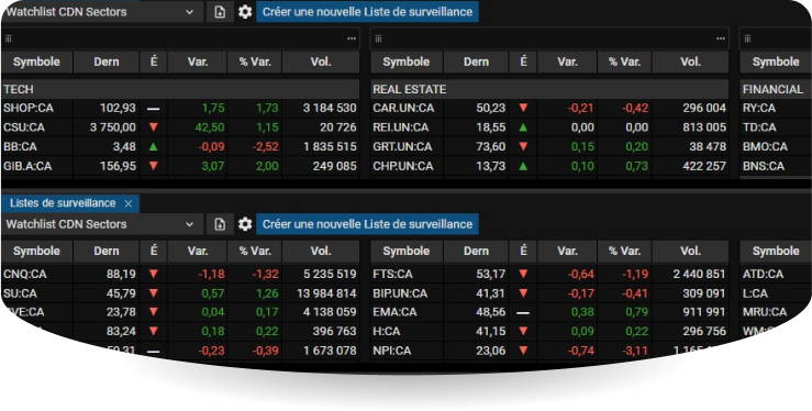 Exportez facilement des listes de surveillance, personnalisez votre affichage et faites le suivi de vos placements grâce à un nouveau module de portefeuille.